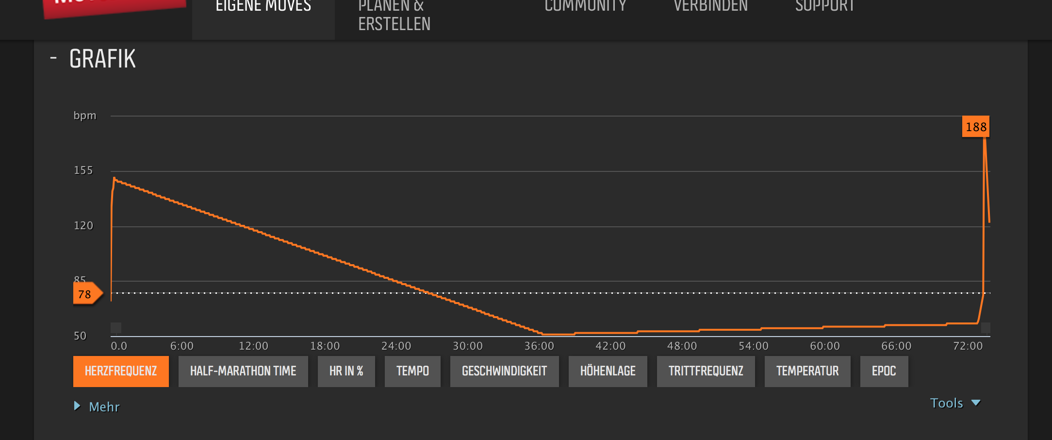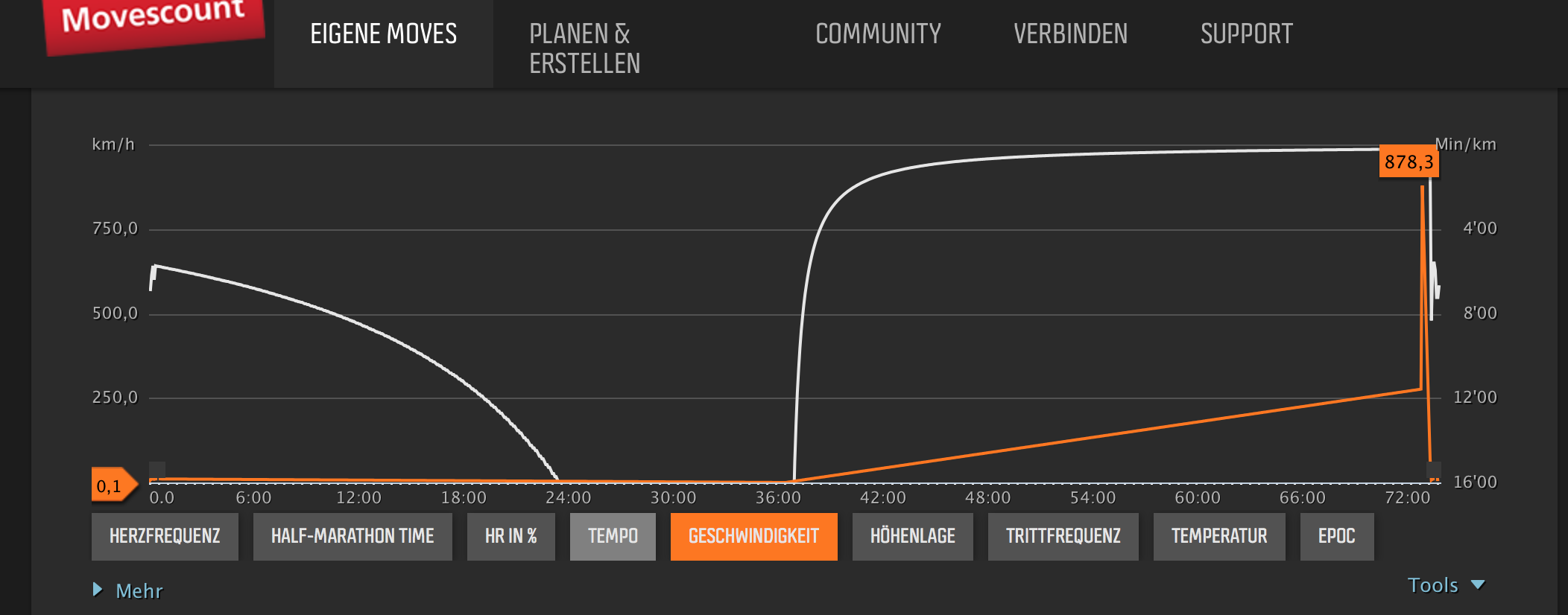 Edit: Wie es aussieht, liegt der Move im Logbuch relativ normal vor (vmax bei 14,3 km/h, Maximalpuls bei 166bpm), allerdings ist es nicht möglich den Move zu löschen und wieder zu syncen, zumindest nicht ohne irgendwelche XML-Dateien zu editieren. Eventuell wurde der Move also erst beim Import zerstört?