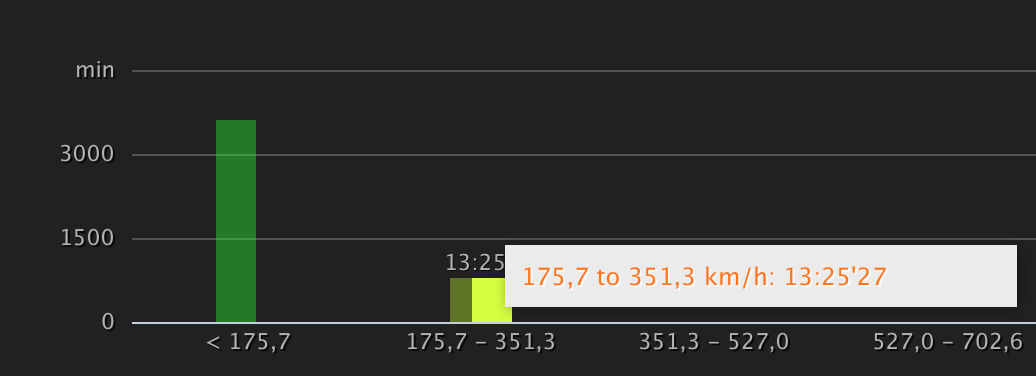 Ich wusste nicht, dass ich so schnell bin, im ersten Sektor (beim lockeren Einlaufen), hatte ich ca. 600 km/h, am Ende war ich dann mit 848km/h recht zügig unterwegs. Auf der Karte zeigen sich diese Abweichungen (wie es scheint bei mehreren Runden, aber immer an fast der selben Stelle).