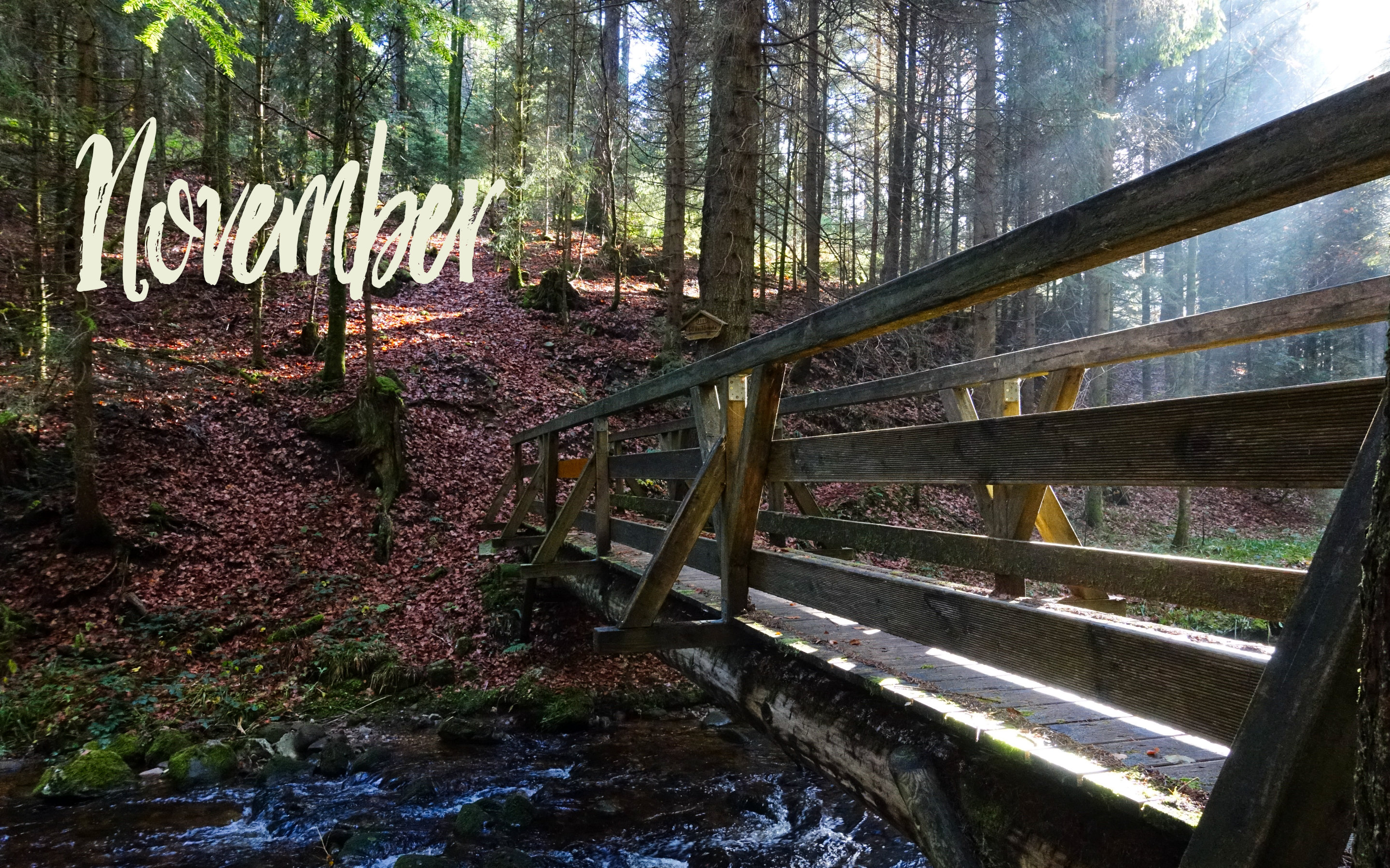 Der goldene Herbst ist vorbei, so langsam steigen die Nebel. Hier eine Impression aus dem Nordschwarzwald, die Brücke über den Ellbach am Gutellbachwegle. Ein Teil des Seensteigs und für Trailläufer zu jeder Jahreszeit reizvoll.