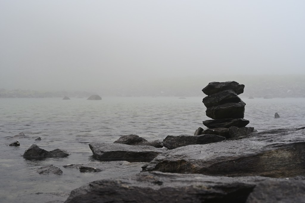Auch eine trübe Stimmung am Bodensee hat ihren Reiz – wobei hier die Stimmung gar nicht so triest war, wie man an den Lichtreflexen im Wasser und auf den Steinen sieht.