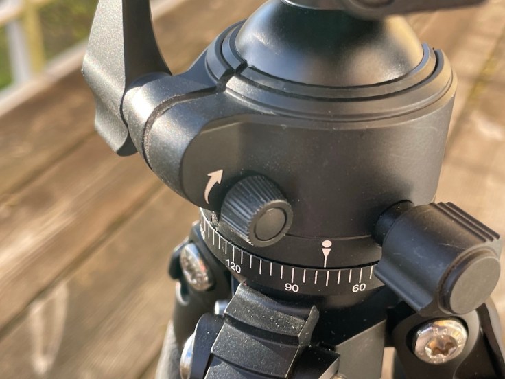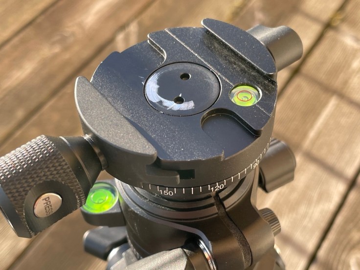 Der Kopf gehört zum durchdachtesten, was ich in dieser Größe jemals gesehen habe, da ist natürlich zum einen die Nivelliereinheit, die durch die Integration sehr leicht ausgeführt werden konnte, daneben besitzt der Kopf aber auch eine Panoramafunktion an der Basis und zusätzlich eine an der Arca-Swiss- Aufnahme.