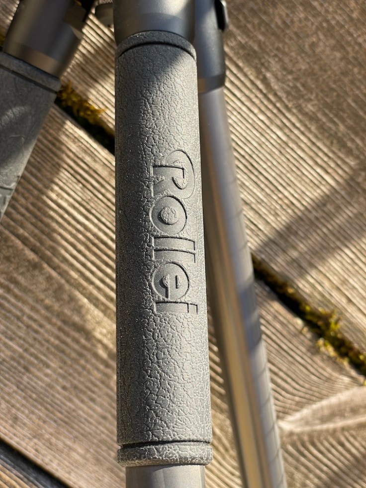 2 der drei Beine besitzen einen rutschfesten Überzug aus Gummi, das dürfte haltbarer sein als das übliche Neopren, kein Wasser aufnehmen und auch weniger leicht verrutschen.