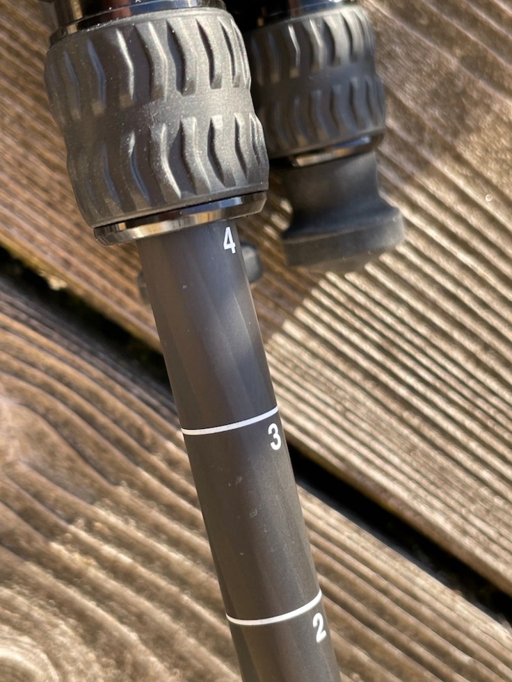 Die Drehverschlüsse laufen gut, das dünnste Beinsegment ist mit einer Skala bedruckt.