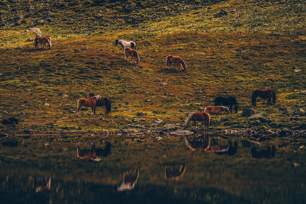Kurz oberhalb der Hütte grasen die Pferde relativ frei rund um den See.