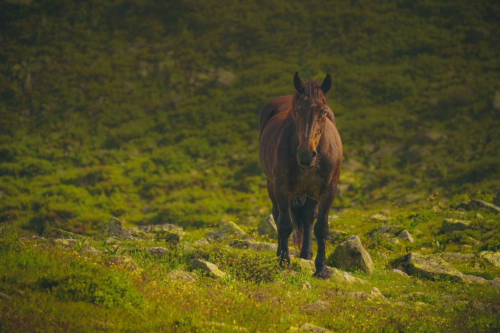 Ähnlich wie Kühe sind Pferde gerade in den Bergen tolle Motive, die zusätzlich noch den Aspekt von Freiheit in sich tragen. Besonders eindrucksvoll wirken sie von unten fotografiert- das hat zusätzlich noch den Vorteil, dass sie dann häufig vor dem Hintergrund freigestellt sind.