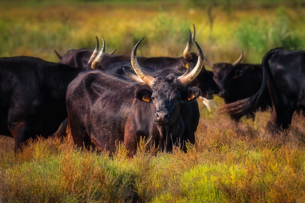Die Stiere der Camargue – auf der Weide sehen sie ruhig aus, aber in der Arena möchte ich ihnen auch nicht gegenüber stehen…