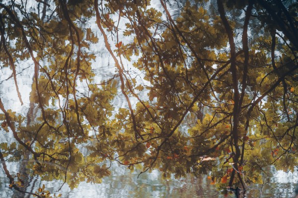 2022-09-12 Was ist Real? Was ist ein Traum?Das hier ist echt - und doch irgendwie nicht.Die Eiche hängt dicht über dem Wasser und die Blätter spiegeln sich in der sehr glatten Wasseroberfläche. Nikon Z6 + Z MC 105mm, ISO800, f/4, 1/125s