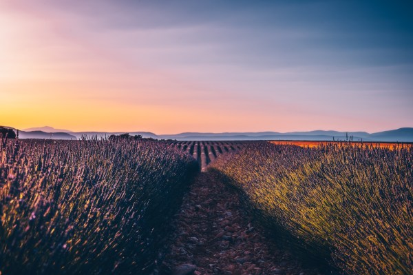 2022-07-07 Magische Stimmung über den Lavendelfeldern von Valensole. Die Sonne versinkt langsam und der Dunst steigt auf. Durch die tiefstehende Sonne erhält der Lavendel eine sehr plastische Struktur und durch den Dunst wird zusätzlich Tiefe im Hintergrund erzeugt. Nikon Z6 + Z24-200mm@200mm, ISO100, f/8, 1/180s