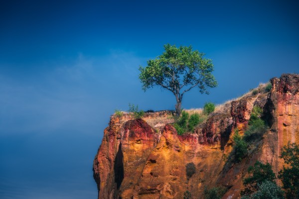 2022-07-03 Auf der Felsnase in Roussillion steht dieser Mandelbaum, sicher viel fotografiert, da oben ein Aussichtspunkt ist, hier aber aus einer etwas anderen Perspektive.Mir gefällt der Baum und natürlich die warmen Ockerfarben und auch die "Mächtigkeit" durch die Perspektive von unten. Nikon Z6 + Z24-200mm@135mm, ISO100, f/9.5, 1/500s