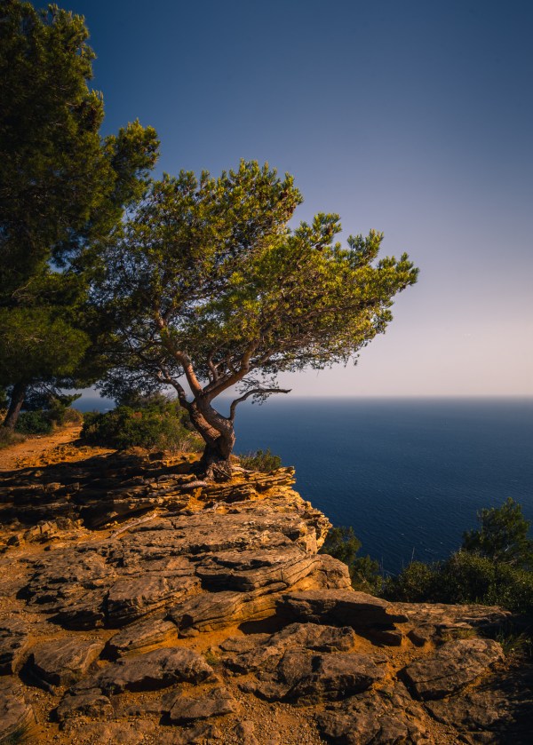 2022-04-07 Diese Kiefer hat einen absoluten Logenplatz, hoch über dem Mittelmeer thront sie oberhalb von Cassis und "blickt" über die Calanque. Dieser Baum steht direkt an der recht bekannten "Route de Crêtes" - eine Stelle, an der der Wind wohl nie aufhört zu blasen... Nikon Z6 + Z24-200mm@41mm, ISO100, f/11, 1/1000s (HDR aus 3 Aufnahmen)