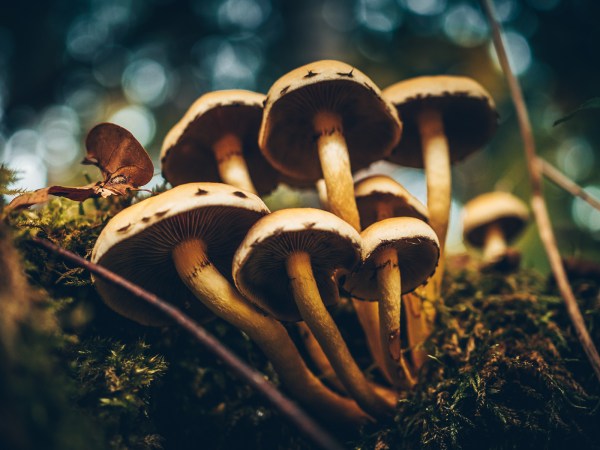 2022-10-25 Eine Gruppe Pilze bei uns im Tobel. Die Mücke war eine kostenlose Zugabe... Olympus E-M5 mii + 30mm Macro, ISO640, f/4.5, 1/50s