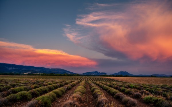 2022-08-29 Manchmal ist es besser bei Sonnenuntergang nicht in Richtung der untergehenden Sonne zu fotografieren, sondern sich auch mal umzudrehen. Dann hat man auf einmal die tollsten Wolken im Bild und ein (wenn auch abgeerntetes) Lavendelfeld im Vordergrund. Nikon Z6 + Z24-120mm@24mm, ISO560, f/5.6, 1/45s