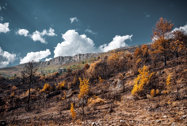2022-08-25 Dieses abgebrannte Waldstück sah völlig surreal aus, gelbe Buxbäume und schwarze, verkohlte Stämme... Nikon Z6 + Z 24-120mm@30mm, ISO100, f/8, 1/1000s